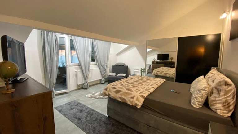 Die Ferienwohnung umfasst ein Schlafzimmer und ein Wohnzimmer mit einem Flachbild-TV. Des Weiteren ist eine voll ausgestattete Küche vorhanden, die mit einem Kühlschrank und einer Mikrowelle ausgestattet ist. Ein Badezimmer mit Dusche sowie Handtücher und Bettwäsche sind ebenfalls vorhanden.