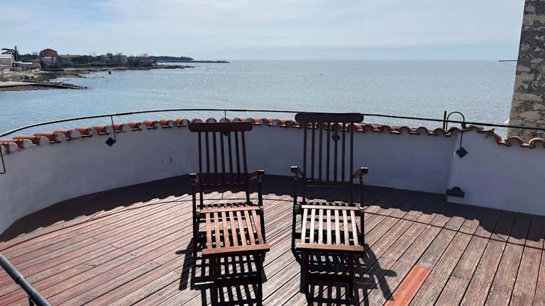 Das Ferienhaus umfasst ein Schlafzimmer, ein Wohnzimmer und ein Badezimmer mit Dusche. Es sind Bettwäsche und Handtücher vorhanden, sowie ein Wasserkocher für die Bequemlichkeit der Gäste. Die Unterkunft bietet Klimaanlage, kostenloses WLAN und eine Terrasse mit Meerblick.