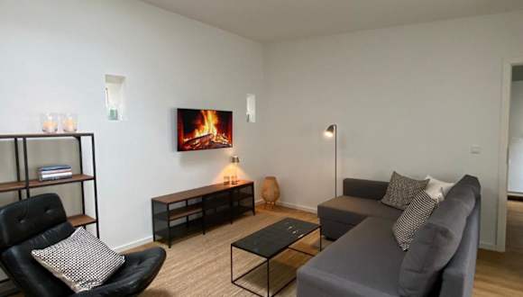 Die Ferienwohnung verfügt über ein Wohnzimmer mit einem Flachbild-TV und eine voll ausgestattete Küchenzeile, die mit einem Kühlschrank und Geschirrspüler ausgestattet ist. Zudem gibt es ein Badezimmer mit einer Dusche. Die Unterkunft bietet kostenloses WLAN und ist ideal für längere Aufenthalte.