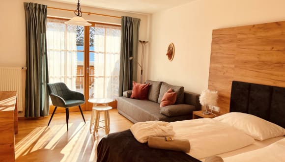 Unzählige Möglichkeiten zur Freizeitgestaltung, von ausgedehnten Rad- oder Wandertouren durch die bezaubernde Naturlandschaft der Region über spannende Rundgänge durch das Murnauer Moos bis hin zu atemberaubenden Ausblicken von den Gipfeln der Berge, versprechen einen abwechslungsreichen Urlaub. Erfrischen Sie sich in einem der zahlreichen Seen in der Umgebung, erklimmen Sie die Gipfel der Ammergauer Alpen oder entspannen Sie in Deutschlands höchstgelegenem Moorbad oder Für Ihre Entspannung und Erholung sorgt unser Wellnessbereich mit der 230 m² großen Saunalandschaft. Spüren Sie die wohltuende Wärme unserer Finnischen Sauna. Erholen Sie sich bei den angenehmen Temperaturen der Kamin-Biokräutersauna, auf den Wärmebänken ausspannen und in der harmonischen Ruhezone in geruhsamen Schlaf versinken.