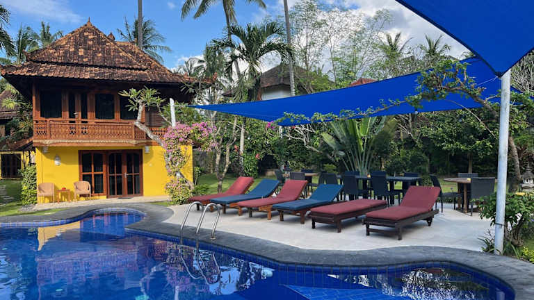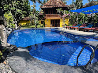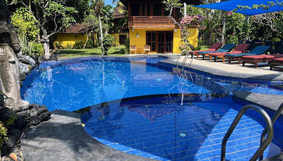 Kura Kura Villas befindet sich in Candidasa, umgeben von einem gepflegten tropischen Garten. Die Lage ermöglicht einen einfachen Zugang zu lokalen Attraktionen, einschliesslich des Padang Bai Hafens, der etwa 20 Minuten entfernt liegt, und dem ikonischen Besakih Tempel, der in ungefähr 50 Minuten erreicht werden kann. Der Flughafen Bali Denpasar ist rund 2 Stunden mit dem Auto entfernt.