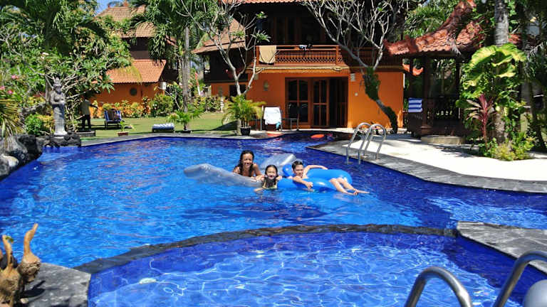 Kura Kura Villas & Candidasa Mini Golf bietet eine elegante und heimelige Unterkunft mit Blick auf den üppigen Garten. Die Anlage umfasst einen Aussenpool sowie eine Mini Golf Anlage, die als einzige auf der Ostküste von Bali gilt. Gäste können kostenfreies Wifi nutzen und es stehen Parkiermöglichkeiten vor Ort zur Verfügung.