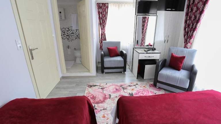 Die Zimmer im Kural Pansiyon sind mit Klimaanlage, Schreibtisch, Flachbild-TV, eigenem Badezimmer, Bettwäsche, Handtüchern und einem Balkon mit Stadtblick ausgestattet. Ein Kühlschrank ist ebenfalls in den Wohneinheiten vorhanden. Schallisolierte Zimmer stehen den Gästen zur Verfügung, um eine ruhige und entspannte Atmosphäre zu gewährleisten.