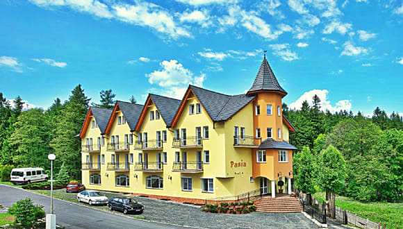 Das Hotel Pasja liegt in Świeradów-Zdrój und bietet eine ideale Lage für Naturliebhaber und Aktivurlauber. Die Umgebung lädt zu zahlreichen Freizeitaktivitäten wie Radfahren und Wandern ein. Der Skilift und die Gondelbahn befinden sich ebenfalls in der Nähe und bieten die Möglichkeit zum Skifahren und Snowboarden.