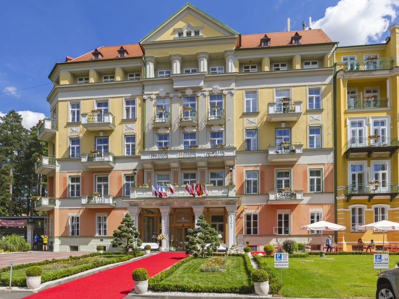 • die Königsvilla der Stadt Franzensbad, in der ersten Republik ein beliebter Treffpunkt für die elegante Gesellschaft, ist heute ein modernes Kurhotel das mit dem Aquaforum, dem größten und schönsten Aquapark der böhmischen Bäder, und dem Kurmittelhaus Kaiserbad direkt verbunden ist • spezialisiert auf klassische Heilkuren • Therapie- u. Reha-Abteilung mit allen Dienstleistungen unter einem Dach • hauptsächliche Verwendung von lokalen Naturheilmitteln • nur 10 km bis zur deutschen Grenze, 180 km bis Prag und jeweils 200 km bis Dresden und Nürnberg • mitglied im Heilbäderverband MediSpa und Träger des ISO- Qualitätsmanagementzertifikats • 111 Doppelzimmer • 144 Einzelzimmer • 3 Appartements sowie ein luxuriöses Maisonette-Appartement im Aquaforum