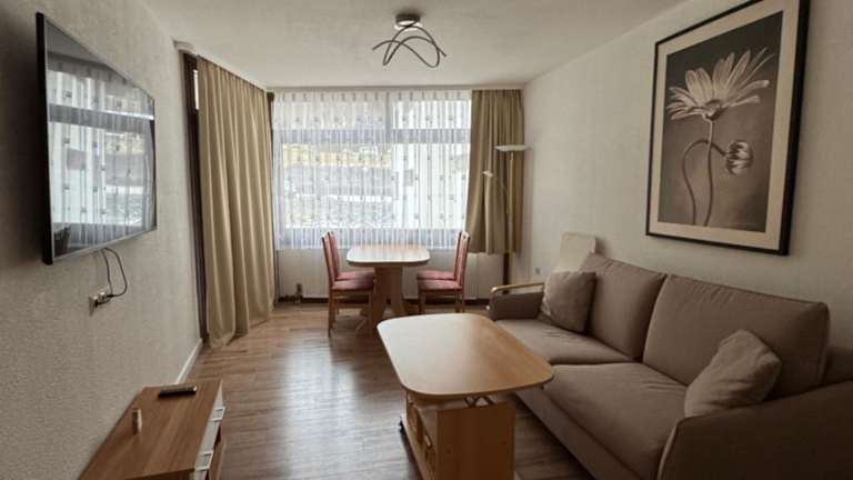 Die Ferienwohnung verfügt über 1 Schlafzimmer und ein Wohnzimmer, das mit einem Flachbild-TV ausgestattet ist. Eine voll ausgestattete Küche mit Kühlschrank und Kaffeemaschine ist ebenfalls vorhanden. Das Badezimmer bietet eine Dusche und Haartrockner. Ein Balkon ermöglicht es den Gästen, die frische Luft zu geniessen.
