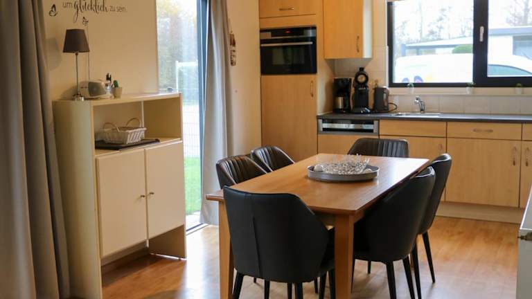 Das Ferienhaus bietet eine Terrasse mit Gartenblick und ist mit Satelliten-Flachbild-TV ausgestattet. Eine gut ausgestattete Küche mit Kühlschrank, Geschirrspüler und Mikrowelle steht zur Verfügung. Die Unterkunft verfügt über zwei Badezimmer mit Dusche und Haartrockner. Die Zimmer sind Nichtraucherzimmer.