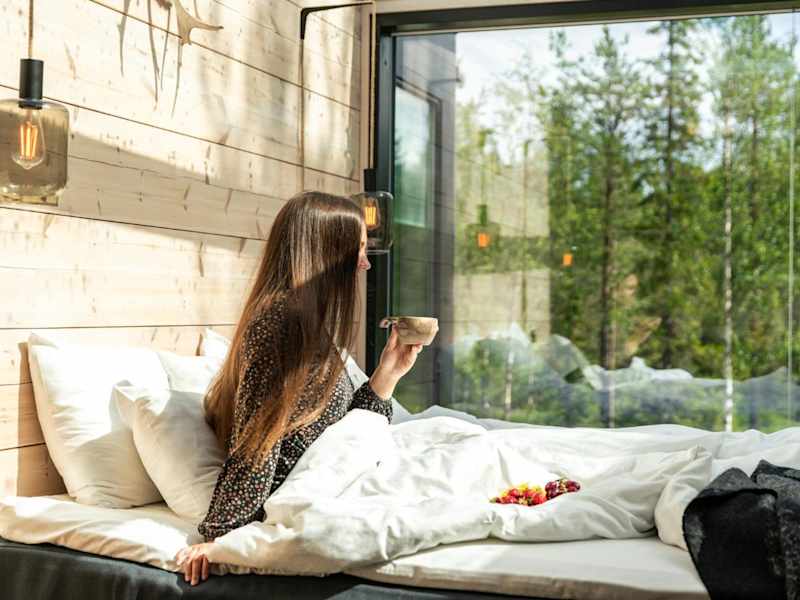 Die Zimmer im Kuuru Tunturilaakso by Kide Hotel sind ausgestattet mit einem Kleiderschrank, einer Kaffeemaschine, einem Kühlschrank, einem Ofen, einem Safe, einem Flachbild-TV, einer Terrasse sowie einem eigenen Badezimmer mit einem Bidet. Bettwäsche und Handtücher werden bereitgestellt.