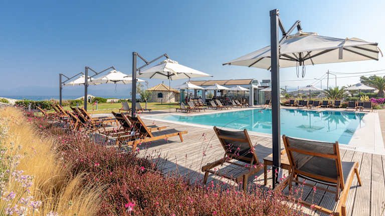 Das Hotel bietet eine Aussenpoolanlage, die zur Erfrischung einlädt. Gäste können zudem eine Wasserrutsche und eine Terrasse mit Sonnenliegen und Sonnenschirmen nutzen. Das Sport- und Freizeitangebot umfasst flexible Gestaltungsmöglichkeiten.