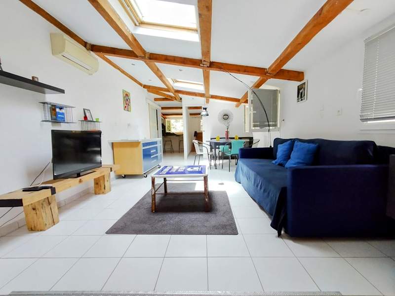 L'Atelier en Cévennes - Logement 55m2 bietet klimatisierte Übernachtungsmöglichkeiten in einer heimeligen Ferienwohnung mit Veranda oder Patio. Gäste können kostenloses Wifi nutzen und sich über einen eigenen Pool sowie einen Garten freuen.