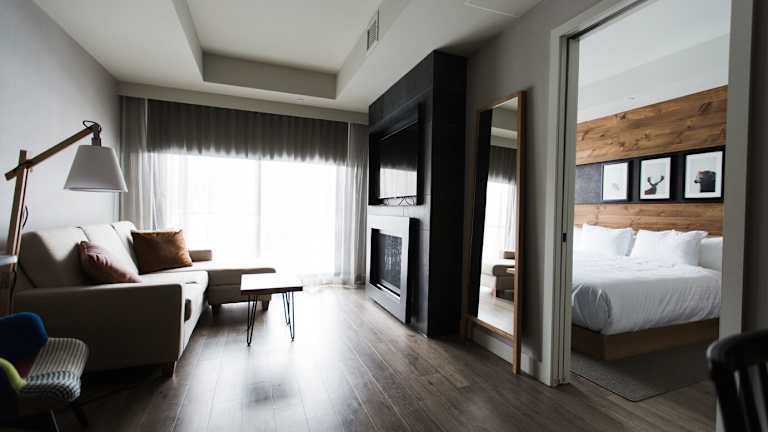 Die Zimmer sind ausgestattet mit Klimaanlage, Heizung, einem Queensizebett und einem Sofabett. Einige Zimmer verfügen über einen Kamin oder eine Whirlpool-Badewanne. Zur Standardeinrichtung gehören auch eine Tee-/Kaffeemaschine, ein Kühlschrank und kostenloses Wifi. Die Badezimmer bieten eine Dusche, einen Haartrockner und Kosmetikartikel. Es sind Familien- und Nichtraucherzimmer verfügbar sowie rollstuhlgerechte Zimmer.