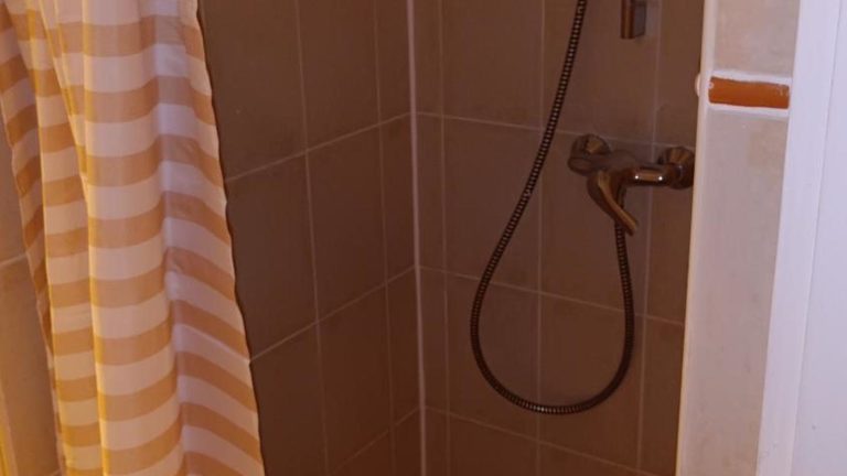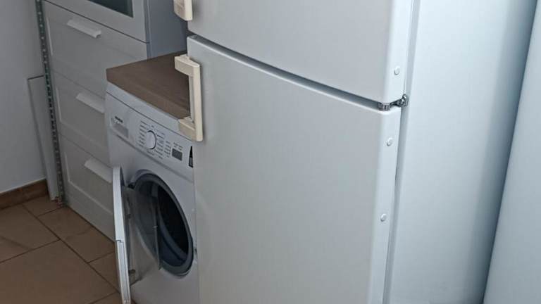 Das Ferienhaus umfasst ein Schlafzimmer, eine Küche mit Kühlschrank und Ofen, sowie ein Bad mit Dusche, Haartrockner und Waschmaschine. Handtücher und Bettwäsche werden bereitgestellt.