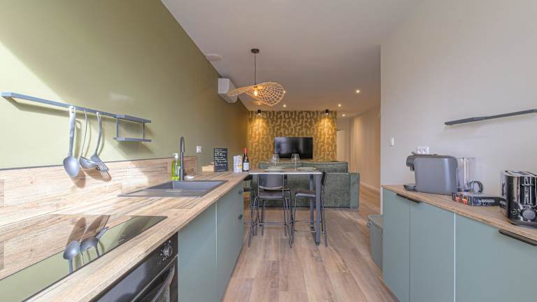 Die Ferienwohnung verfügt über 1 Schlafzimmer, eine Küche mit Kühlschrank und Geschirrspüler, einen Flachbild-TV, einen Sitzbereich und ein Badezimmer mit Dusche. Handtücher und Bettwäsche sind in der Unterkunft erhältlich. Es stehen schallisolierte Zimmer zur Verfügung.