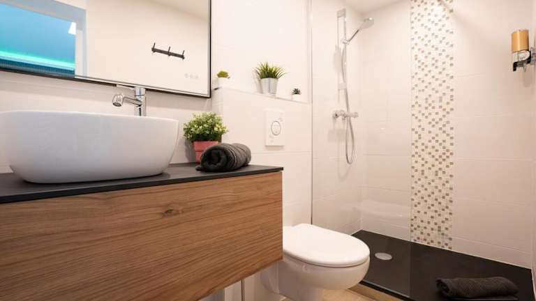 Die Ferienwohnung umfasst 1 Schlafzimmer, eine Küche mit Kühlschrank und Ofen sowie 1 Badezimmer mit Dusche und Whirlpool. Zur Ausstattung gehören Handtücher und Bettwäsche, die bereitgestellt werden.