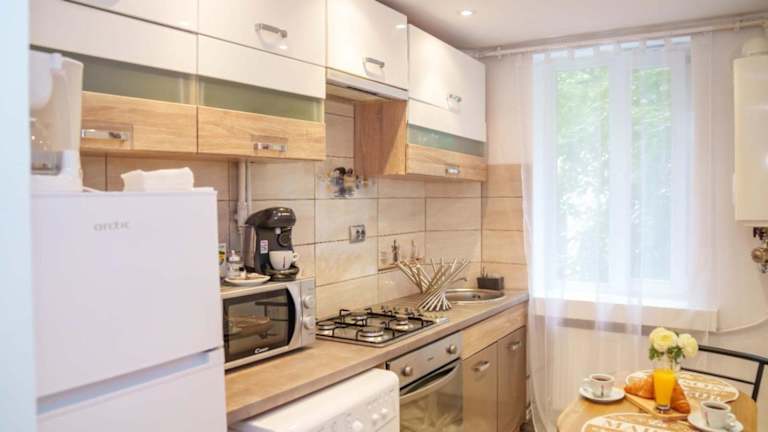 Die Ferienwohnung besteht aus 1 Schlafzimmer und einem Wohnzimmer. Sie verfügt über eine voll ausgestattete Küche mit Kühlschrank und Kaffeemaschine sowie ein Badezimmer mit Dusche und kostenlosen Pflegeprodukten. Die Unterkunft bietet zudem Klimaanlage, WLAN in allen Bereichen, und es werden Handtücher sowie Bettwäsche bereitgestellt. Die Reinigung erfolgt nach strengen Richtlinien der örtlichen Behörden.