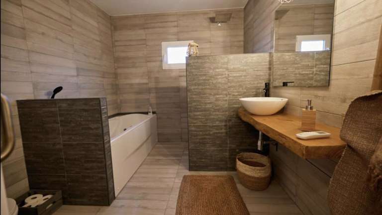 Das Ferienhaus verfügt über 3 Schlafzimmer, eine voll ausgestattete Küche mit Kühlschrank und Geschirrspüler, sowie 2 Badezimmer mit Dusche und Whirlpool. Zur Unterhaltung bietet es einen Flachbild-TV.