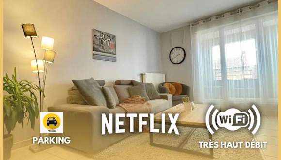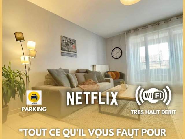 L'idéal Cosy-wifi-Netflix et Garage ist eine Ferienwohnung, die eine Terrasse und Stadtblick bietet. Sie verfügt über einen kostenlosen Privatparkplatz, einen Geldautomaten und kostenloses WLAN.