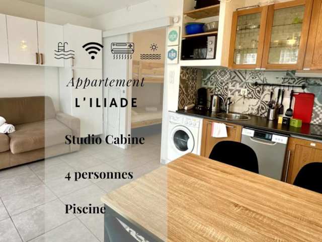 Die Unterkunft liegt in La Grande-Motte, nur 200 m vom Strand Plage du Couchant und 600 m vom Strand Plage du Grand Travers entfernt. In der Nähe befinden sich der Parc des Expositions de Montpellier (12 km) und die Arena Montpellier (13 km). Der nächstgelegene Flughafen, der Flughafen Montpellier Méditerranée, ist 18 km entfernt.