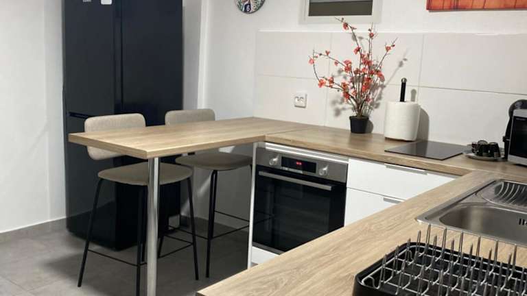 Die Ferienwohnung besticht durch eine Klimaanlage und beinhaltet 1 Schlafzimmer sowie ein Wohnzimmer. Eine voll ausgestattete Küche mit Kühlschrank und Kaffeemaschine steht zur Verfügung, ebenso ein Badezimmer mit Dusche. Handtücher und Bettwäsche sind vorhanden.