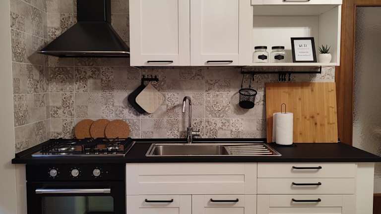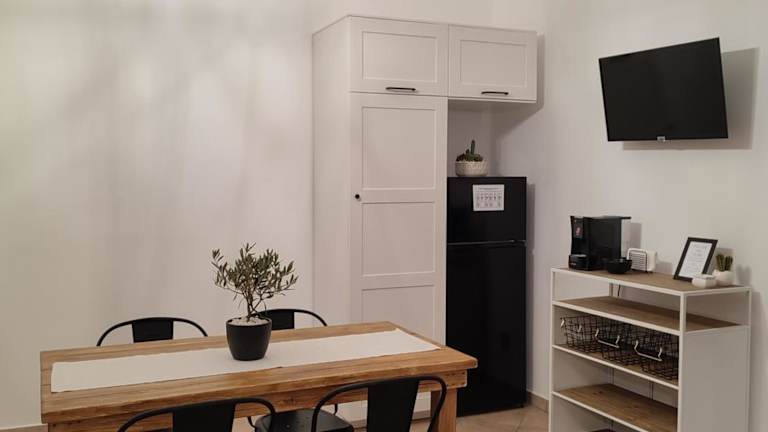 Die Unterkunft umfasst eine voll ausgestattete Küche, die mit einem Kühlschrank und einer Kaffeemaschine ausgestattet ist, wodurch die Gäste ihre Mahlzeiten selbst zubereiten können.