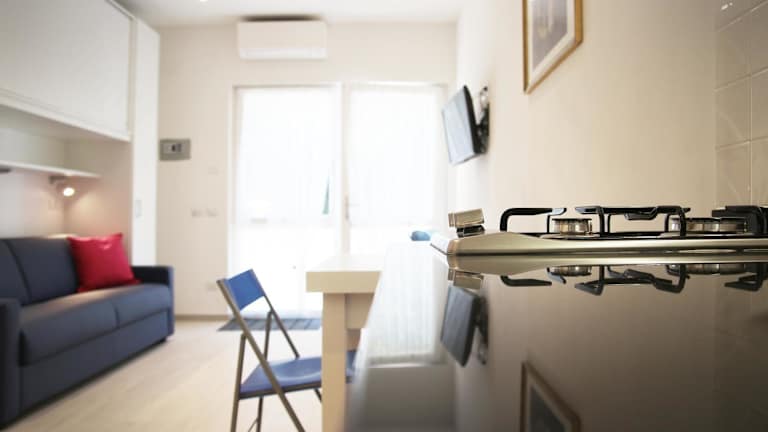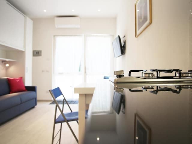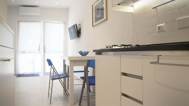 Die Unterkunft verfügt über ein Schlafzimmer und ein Badezimmer mit Bidet, Dusche und Haartrockner. Die Küchenzeile ist mit Kühlschrank, Mikrowelle, Herdplatte und Wasserkocher ausgestattet. Klimaanlage ist vorhanden.
