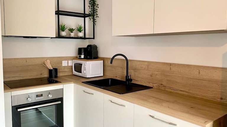 Die Ferienwohnung verfügt über 1 Schlafzimmer, eine gut ausgestattete Küche mit Kühlschrank und Geschirrspüler, einen Flachbild-TV, einen Sitzbereich sowie ein Badezimmer mit Dusche. Handtücher und Bettwäsche werden zur Verfügung gestellt.