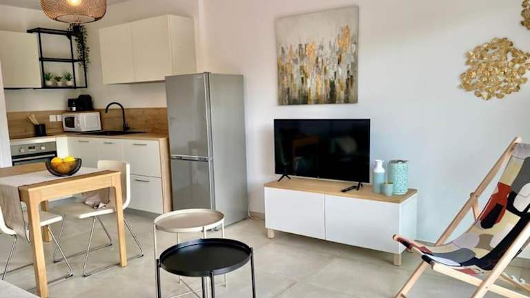 L'Ondella T2 Porticcio et Garage bietet eine klimatisierte Unterkunft mit einer Terrasse und einem Privatparkplatz. Die Ferienwohnung ist modern und heimelig ausgestattet.