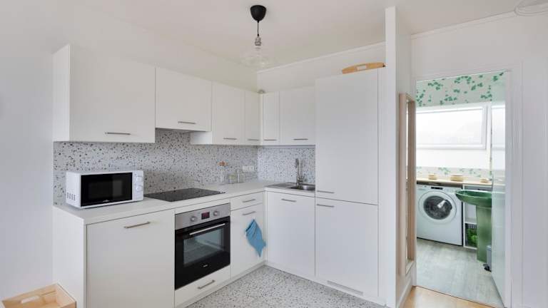 Die Ferienwohnung besteht aus einem Schlafzimmer, einem Wohnzimmer und einer voll ausgestatteten Küche mit Kühlschrank und Kaffeemaschine. Das Badezimmer ist mit einer Badewanne und einem Haartrockner ausgestattet. Zudem steht ein Balkon zur Verfügung.