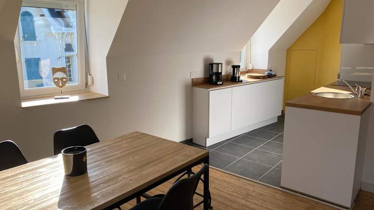 L’universel ist eine Ferienwohnung, die sich im zweiten Stockwerk gelegen ist und eine heimelige Atmosphäre ausstrahlt. Die Unterkunft ist gut ausgestattet und bietet kostenloses Wifi für eine angenehme Verbindung.