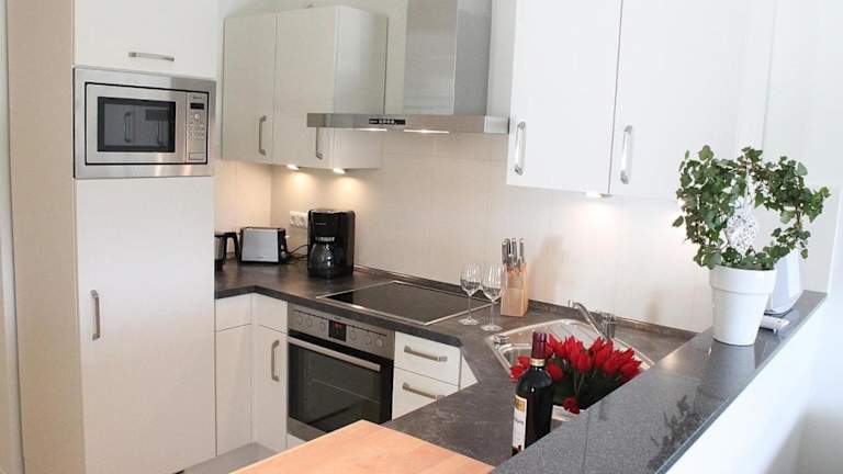 Die Ferienwohnung verfügt über 2 Schlafzimmer und ist mit einer Küchenzeile ausgestattet, die einen Kühlschrank, einen Geschirrspüler sowie eine Kaffeemaschine beinhaltet. Die Unterkunft verfügt über Nichtraucherzimmer und bietet kostenlosen Zugang zu Internet über Wifi.