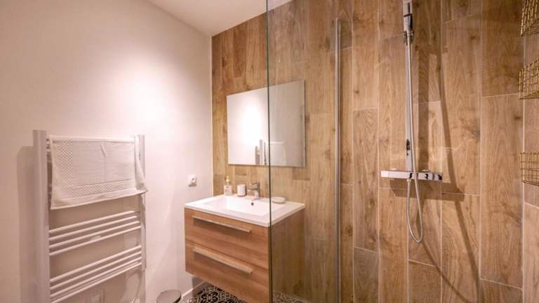 Die Ferienwohnung besteht aus einem Schlafzimmer, einem Wohnzimmer sowie einer voll ausgestatteten Küche mit Kühlschrank und Kaffeemaschine. Zudem steht ein Badezimmer mit Badewanne oder Dusche und kostenlosen Pflegeprodukten zur Verfügung. Handtücher und Bettwäsche werden zur Verfügung gestellt.
