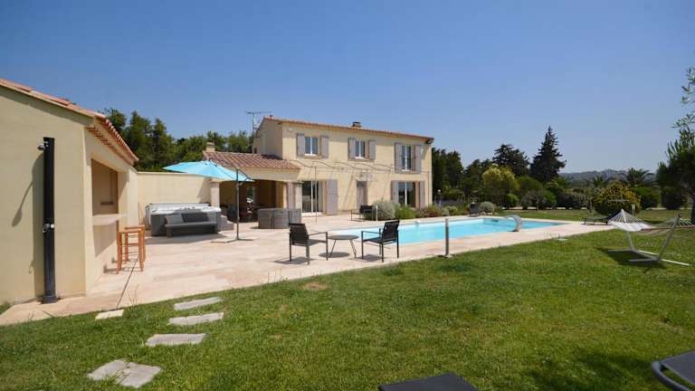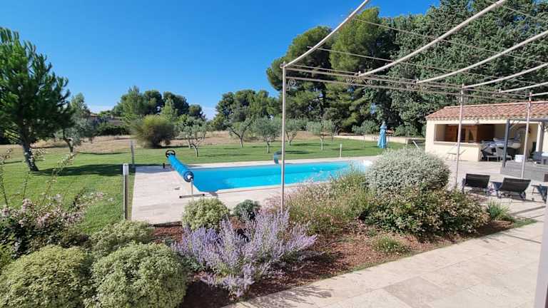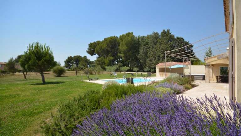 Gelegen in Maussane les Alpilles, bietet die Villa einen herrlichen Blick auf die Berge und den Pool. Die Umgebung lädt zum Wandern ein, wobei das Amphitheater von Arles in 25 km und der TGV-Bahnhof Avignon in 30 km Entfernung liegen.