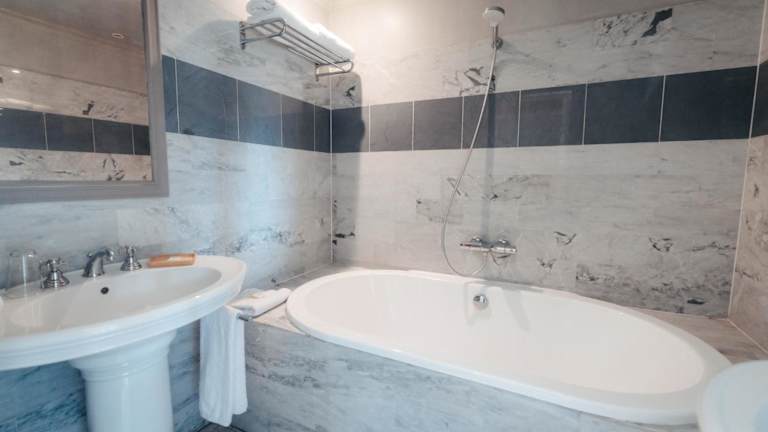 Die klimatisierten Zimmer im Café de Paris sind komfortabel und gemütlich eingerichtet. Jedes Zimmer verfügt über einen Kleiderschrank, einen Flachbild-TV und ein eigenes Bad mit Badewanne, kostenfreien Pflegeprodukten und einem Haartrockner. Für zusätzlichen Komfort stehen Hausschuhe zur Verfügung.