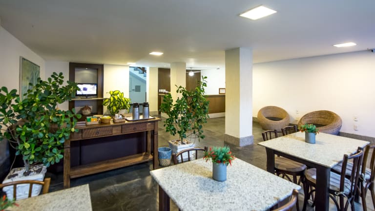 Der gastronomische Bereich umfasst ein Restaurant und eine Bar. Morgens erwartet die Gäste ein Frühstücksbuffet mit einer Auswahl an frischen tropischen Früchten, Brötchen und regionalen Kuchen, serviert auf einer Terrasse mit herrlichem Meerblick.