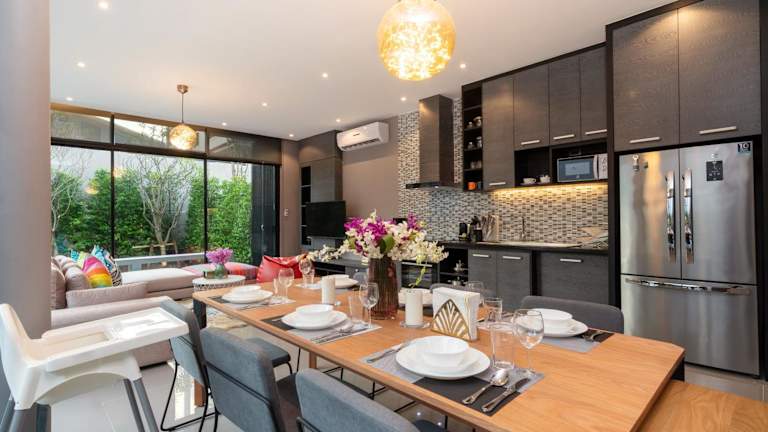 La Belle Pool Villa Phuket - Home Away from HOME bietet Übernachtungsmöglichkeiten in einer heimeligen und gut ausgestatteten Umgebung. Die Unterkunft verfügt über einen eigenen Pool sowie einen kostenlosen Privatparkplatz. Zudem steht ein Fitnesscenter zur Verfügung, und Gäste können sich im Garten oder auf der Terrasse mit Bergblick entspannen. Die Villa ist rauchfrei und bietet Zugang zu modernen Annehmlichkeiten.