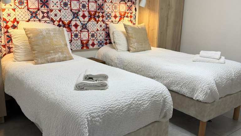 Die Ferienwohnung besteht aus 2 separaten Schlafzimmern und einer voll ausgestatteten Küche, die mit einem Kühlschrank und einem Geschirrspüler ausgestattet ist. Es gibt 2 Badezimmer und Handtücher sowie Bettwäsche werden zur Verfügung gestellt.