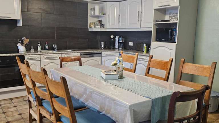 Das Ferienhaus besteht aus 4 Schlafzimmern, einem Wohnzimmer und einer voll ausgestatteten Küche. Die Küche ist mit einem Kühlschrank und einer Kaffeemaschine ausgestattet. Zudem gibt es ein Badezimmer mit Dusche und Haartrockner. Handtücher und Bettwäsche werden zur Verfügung gestellt. Die Unterkunft ist ideal für Familien geeignet.