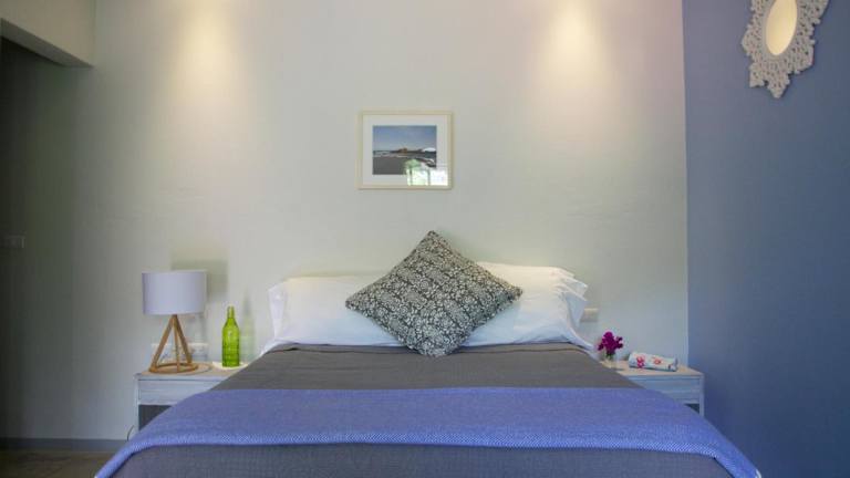 Die schlicht und farbenfroh gestalteten Zimmer im La Betulia Bed and Breakfast verfügen über einen kleinen Kleiderschrank und ein eigenes Bad mit geschmackvoll gefliesten Wänden und Böden. Zudem ist ein Nachttisch vorhanden.