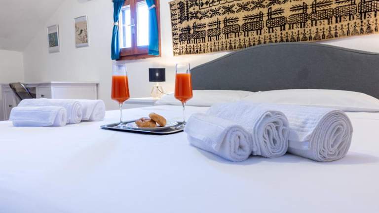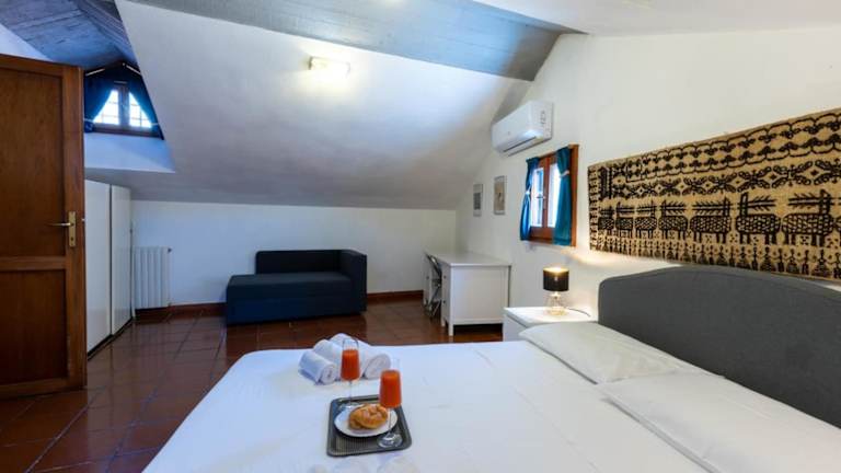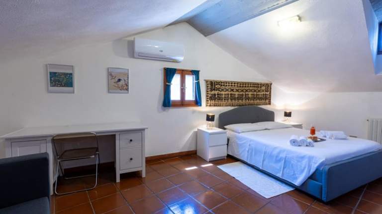 Die Ferienwohnung besteht aus einem Schlafzimmer, einem Wohnzimmer und einer voll ausgestatteten Küche mit Kühlschrank und Kaffeemaschine. Zudem gibt es ein Badezimmer mit Bidet und Dusche. Handtücher und Bettwäsche werden zur Verfügung gestellt.