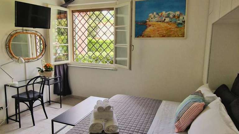 Die Ferienwohnung ist klimatisiert und besteht aus einem Schlafzimmer, einem Wohnzimmer sowie einer voll ausgestatteten Küchenzeile mit Kühlschrank und Kaffeemaschine. Zudem gibt es ein Badezimmer mit Bidet und Dusche. Handtücher und Bettwäsche sind ebenfalls verfügbar. Die Unterkunft bietet schallisolierte Zimmer und zusätzliche Annehmlichkeiten wie einen eigenen Zugang zur Terrasse.