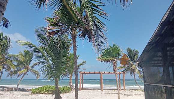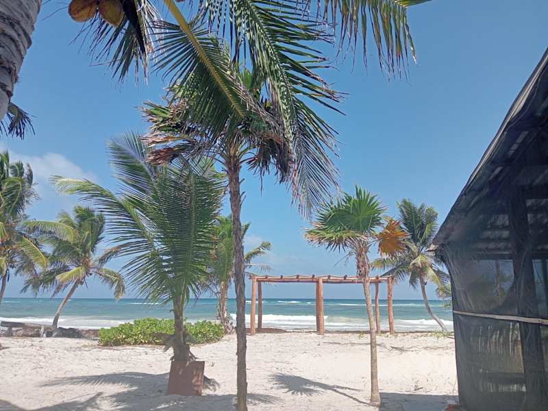 Die Unterkunft La cabaña del pescador befindet sich in Tócuaro mit direktem Zugang zu einem eigenen Strandbereich und Meerblick.