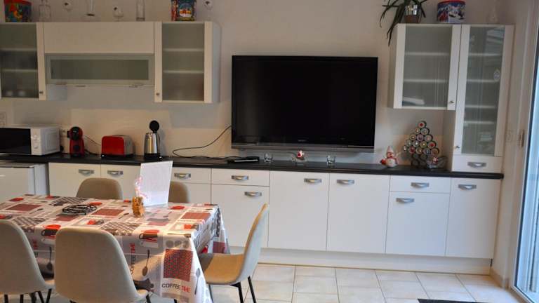 Die Ferienwohnung umfasst ein Schlafzimmer, eine gut ausgestattete Küche, ein Wohnzimmer und einen Flachbild-TV. Die Unterkunft bietet eine Terrasse und Gartenmöbel.