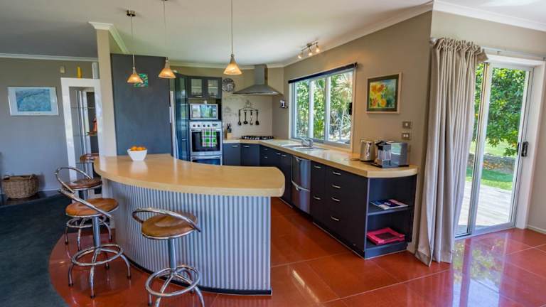 Die Unterkunft La Casa Al Mare - Golden Bay Beach House ist gelegen in Tasman, nur wenige Schritte vom Golden Bay Beach entfernt. Die Umgebung bietet eine ruhige und naturnahe Atmosphäre, ideal für erholsame Ferien.