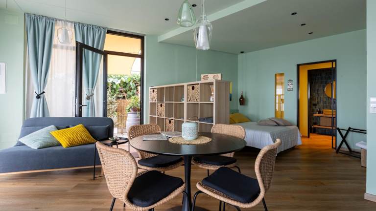 Das Ferienhaus umfasst ein Schlafzimmer, ein Wohnzimmer sowie eine voll ausgestattete Küche mit Kühlschrank und Kaffeemaschine. Des Weiteren gibt es ein Badezimmer mit Bidet und Badewanne oder Dusche. Handtücher und Bettwäsche werden in der Unterkunft bereitgestellt.