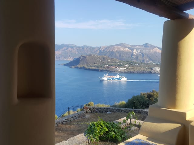 Das Haus befindet sich in Cappero (Gegend von Lipari). Das Haus wurde ursprünglich im Jahre 1900 erbaut und 2012 renoviert. Es handelt sich um eine traditionelle Villa im äolischen Stil. Vor dem Vorgarten befindet sich eine hölzerne Markise, die von Säulen im äolischen Stil, "Pulera", getragen wird. Die Terrasse am Meer mit Blick auf die Insel Vulcano ist von einer niedrigen Plattform namens "Bisola" umgeben, die mit sizilianischen Keramikfliesen verziert ist. Das Haus ist von 1500 qm Gartenfläche umgeben. Mehr Informationen Es ist ein großartiger Ort für Naturliebhaber, da Sie einen atemberaubenden Blick auf die Insel Vulcano genießen können. In der Umgebung gibt es auch einige Wanderwege, die Sie zu den Stränden (z. B. 'Spiaggia della Secca' oder 'Spiaggia Praia Ferrante') oder zum südlichsten Teil der Insel Lipari mit herrlichem Blick auf die Seestapel führen . Es ist ein geeigneter Ort für einen erholsamen und meditativen Urlaub abseits des Chaos der großen Städte. Es gibt kleine Dinge, die man genießen kann, zum Beispiel ein Frühstück, das in stummer Stille auf das glitzernde blaue Meer blickt, und bei Kerzenlicht mit einem geliebten Menschen zu Abend essen.