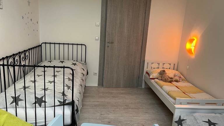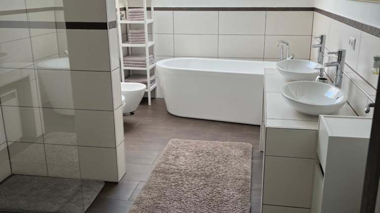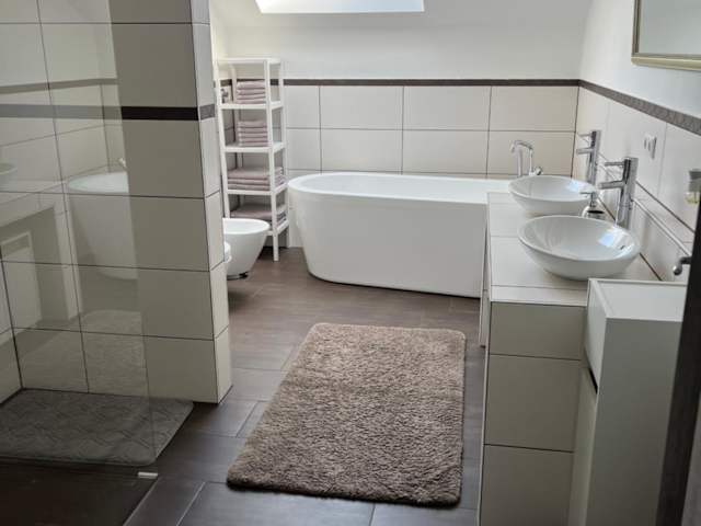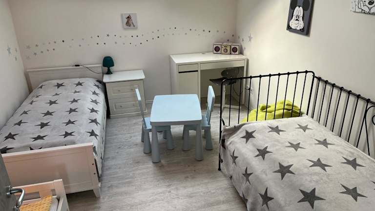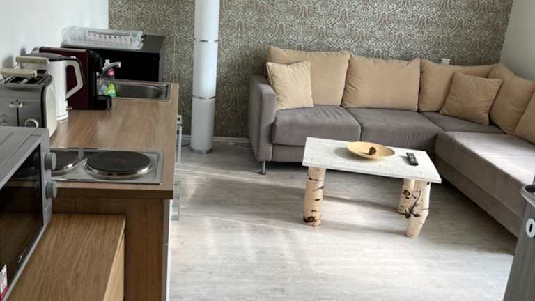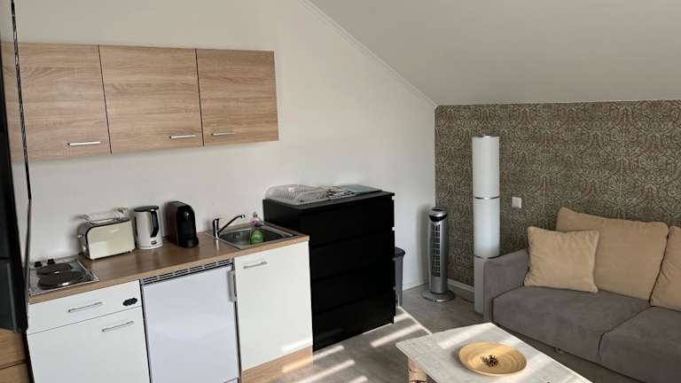 Die Ferienwohnung besteht aus 2 Schlafzimmern, einem Wohnzimmer sowie einer voll ausgestatteten Küchenzeile mit Kühlschrank und Kaffeemaschine. Ein Badezimmer mit Bidet und Dusche sowie Handtücher und Bettwäsche sind vorhanden.