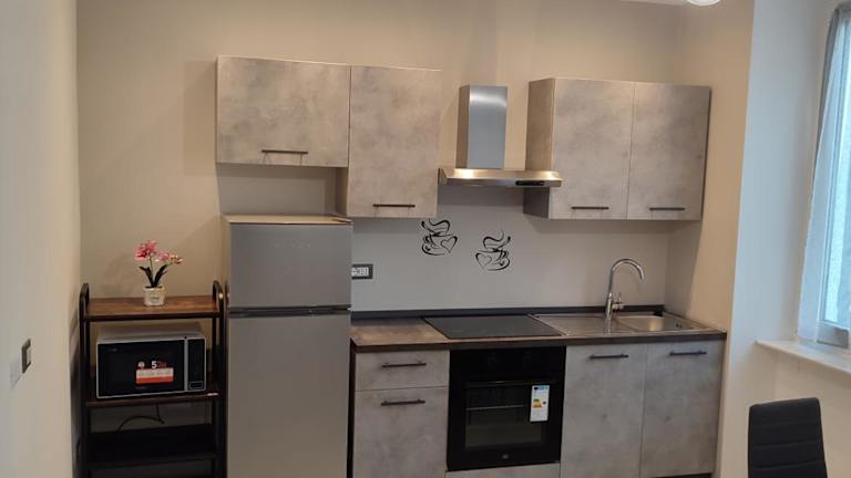 Die Ferienwohnung besteht aus einem Schlafzimmer, einem Wohnzimmer und einer voll ausgestatteten Küche, die mit einem Kühlschrank und einer Kaffeemaschine ausgestattet ist. Zudem verfügt die Unterkunft über ein Badezimmer mit Bidet und Dusche. Handtücher und Bettwäsche werden zur Verfügung gestellt.