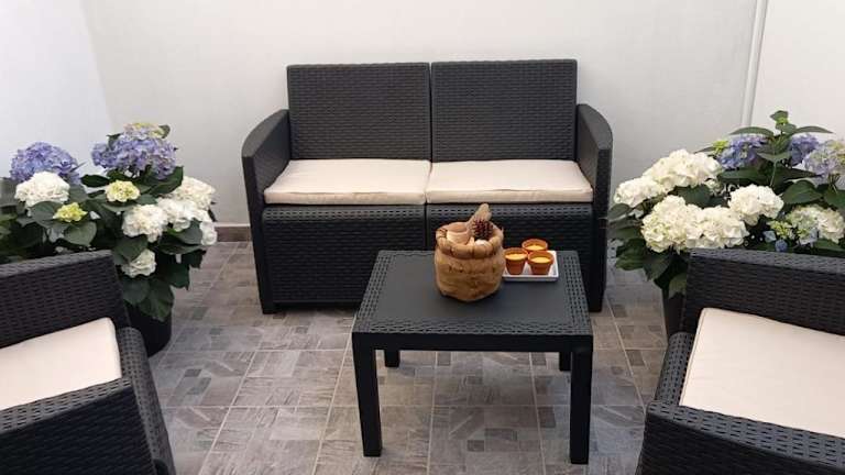 Die Ferienwohnung umfasst zwei klimatisierte Schlafzimmer und zwei Badezimmer, ausgestattet mit einem Bidet, einer Dusche und einem Haartrockner. Zudem ist eine Küche vorhanden, die mit einem Kühlschrank, Ofen, Herdplatte sowie einer Kaffeemaschine augestattet ist. Die Wohneinheiten verfügen über Fliesenböden, einen TV, Kleiderschrank und eine Terrasse mit Meerblick. Bettwäsche und Handtücher sind nicht inbegriffen.