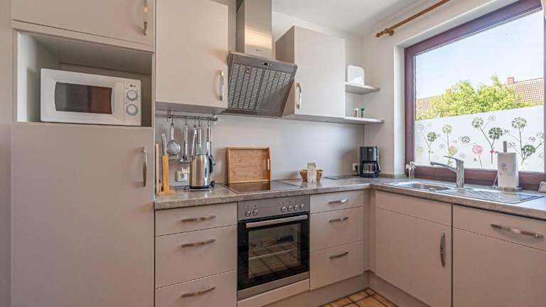 Die Ferienwohnung beinhaltet eine voll ausgestattete Küche, in der die Gäste ihre eigenen Mahlzeiten zubereiten können. Zusätzlich können gegen Aufpreis Handtücher und Bettwäsche bereitgestellt werden.