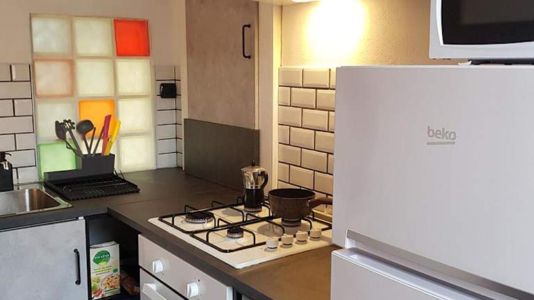 Die Ferienwohnung verfügt über 1 Schlafzimmer und 1 Badezimmer, das mit einem Bidet, einer Dusche und einem Haartrockner ausgestattet ist. Die Küche ist mit einem Kühlschrank, einem Ofen, einer Mikrowelle sowie einer Kaffeemaschine eingerichtet. Zudem ist die Unterkunft klimatisiert und bietet eine Heizung.
